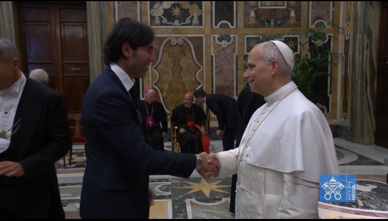 Un grande riconoscimento ed emozione per l’attore e regista Sulmonese Mirko Mascioli. Ieri mattina è stato ricevuto in udienza privata dal Papa Leone XIV. Dopo l’incontro con le star del cinema si è fermato con ognuno singolarmente a scambiare due parole. Privatamente hanno affrontato tanti temi. “È stata una esperienza importante, indelebile per tutta la vita”, afferma il volto di tanti programmi Rai. “Abbiamo accennato a occhi azzurri il film ispirato a una storia vera di femminicidio e altre cose tematiche. Il Santo Padre, ha fatto un appello per il cinema, non dimenticando nessuno, ha parlato dell’importanza del lavoro di tutti, anche di quelli che non si vedono. Questo lavoro che lo faccio da quasi 24 anni ormai, ti permette di fare tante cose anche di vivere giornate come queste. Con Spike Lee e Cate Blanchett abbiamo parlato e scherzato a lungo”. Termina Mascioli. Erano presenti: Spike Lee, Cate Blanchett, Leslie Mann, Viggo Montersen, Luca Barbareschi, Monica Bellucci, Sergio Catellitto, Maria Grazia Cucinotta, Chiara Francini, Matteo Garrone, Ferzan Ozpetek, Giacomo Poretti (del trio Aldo, Giovanni e Giacomo), Stefania Sandrelli, Mirko Mascioli, Chiara Francini, Giuseppe Tornatore, Luigi Lo Cascio,Francesca Manzini, Ferzan Ozpetek, Enrico Vanzina, per citare solo alcune delle stelle del cinema presenti oggi in Vaticano. Ognuno ha avuto modo di parlare con il Santo Padre. Il Papa, alla fine del suo discorso, nel corso del quale ha lanciato anche un appello a fermare i tagli al settore, rievochiamo a salutato uno ad uno.
