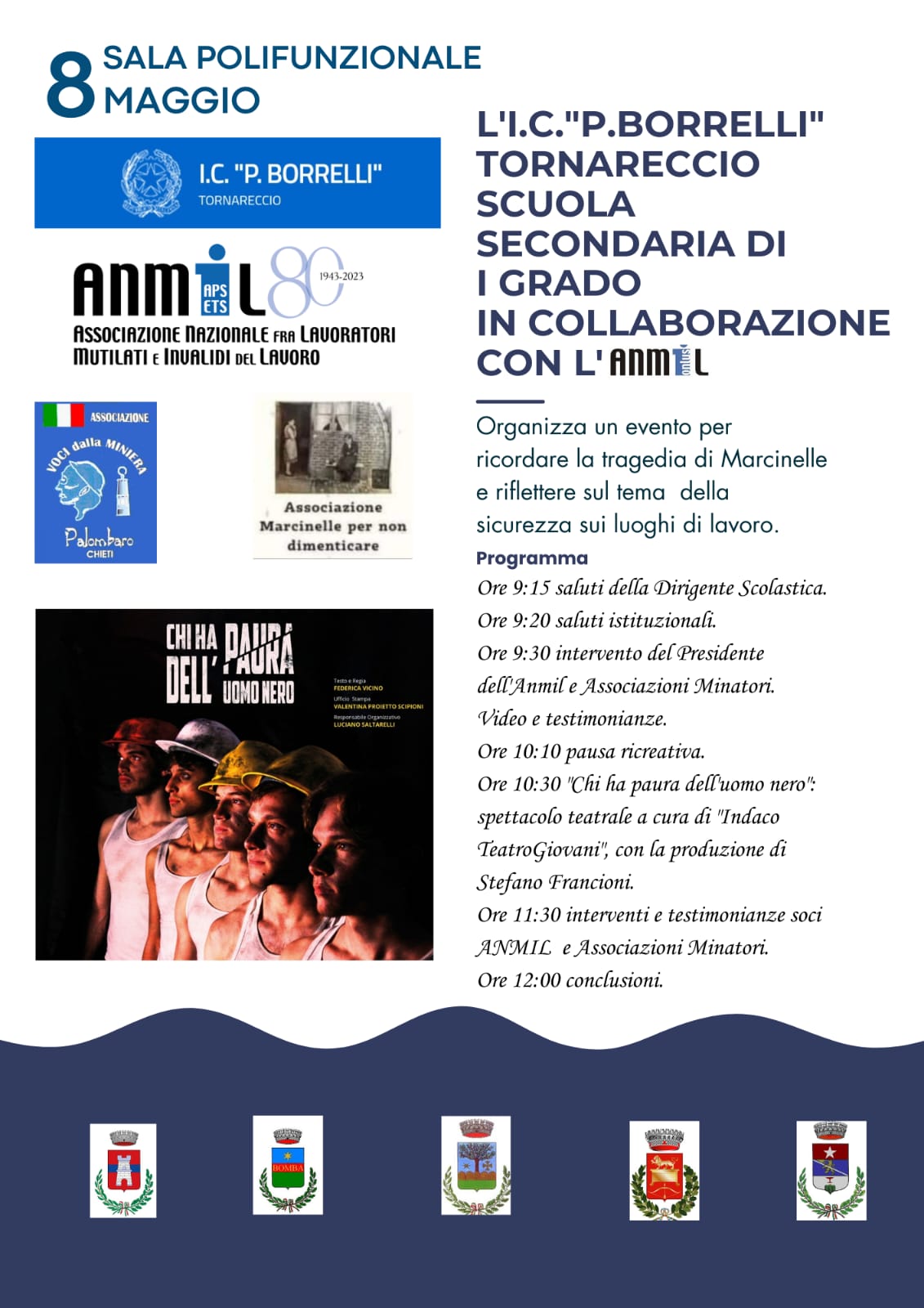 Ha fatto gli onori di casa la Dirigente scolastica, Prof.ssa Valeria Pacella, che ha accolto i referenti di importanti Associazioni quali Antonio D’Onofrio e Domenico Serafini dell’ANMIL, Palmerino Ricci di “Voci dalla miniera” di Palombaro, Nino Di Pietrantonio dell’Associazione “Minatori vittime di Bois du Cazier”. Sono, inoltre, intervenuti, i Sindaci dei comuni di Tornareccio, Archi, Perano, Bomba e Quadri, il Maresciallo della Stazione dei Carabinieri di Archi, il Capitano della Compagnia dei Carabinieri di Atessa e il Parroco di Tornareccio.